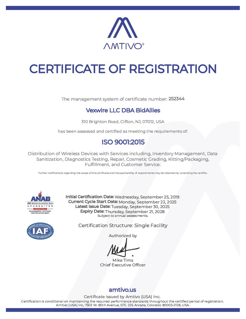 Vexwire holds ISO Certifications for Quality, Environmental, Health & Safety and the Sustainable Electronics Reuse & Recycling (R2) Standard.
